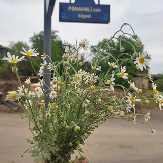 Then we went from Vagif's mausoleum to Isa spring. Along the road, destroyed houses on one side and newly built houses on the other side followed us, as if they were telling me their stories. We walked in the courtyards of houses with bullet holes in the windows and collected honey-smelling flowers from their gardens.